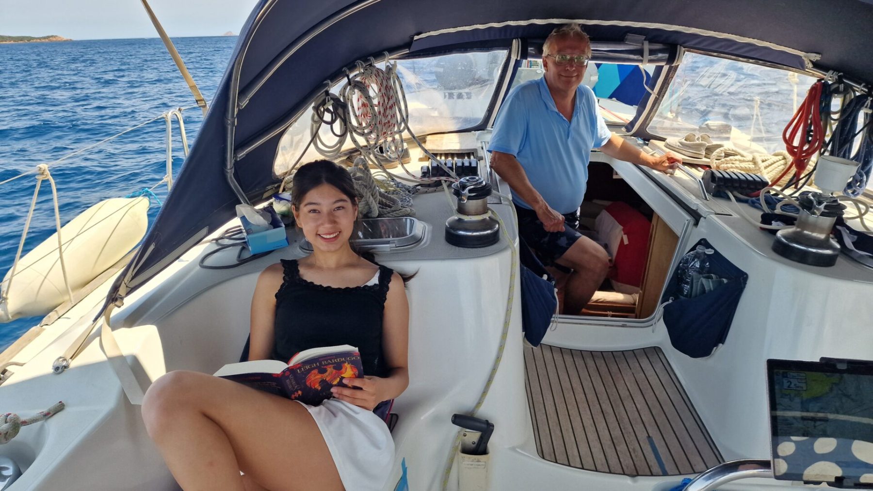 Der Urlaub hätte so schön beginnen können, wäre da nicht das Lateinbuch gewesen. Natürlich hat Talai es „vergessen“ und natürlich hat keiner von uns Lust, nochmal eine Stunde zurückzufahren. Nach intensiver Recherche auf der Autobahn stellen wir fest, dass das Lateinbuch vom Verlag auch online zur Verfügung steht, und falls eine App installiert ist, auch lokal auf dem Tablett gespeichert werden kann. Ich hätte es nicht glauben sollen, denn im Laufe des Urlaubes haben wir mit schlechter Handyverbindung das gesamte Buch jedes Mal neu herunterladen müssen, das ist genau das, was man beim Segeln braucht. Aber es nützt ja nix, die entscheidende Schulaufgabe rückt unerbittlich näher … Aber der Ärger ist dann auch wieder verflogen, und einige Stunden später erreichen wir Livorno.